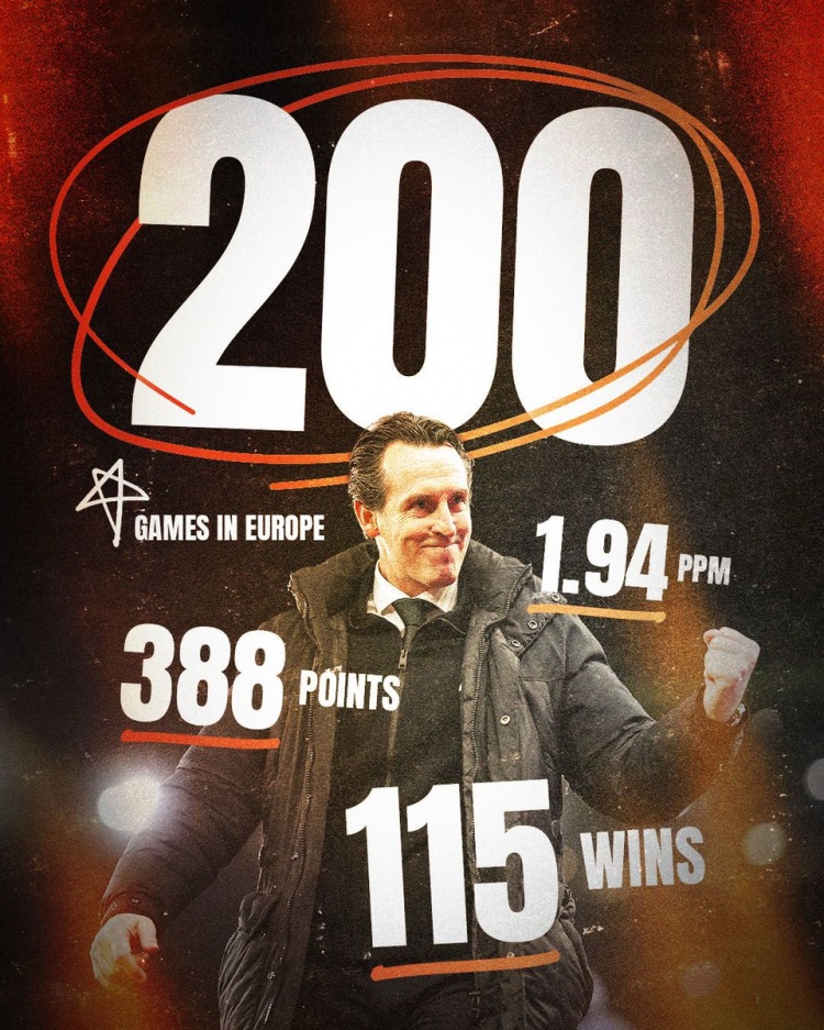 埃梅里完成执教生涯在欧战的200场里程碑,共取得115场胜利388分